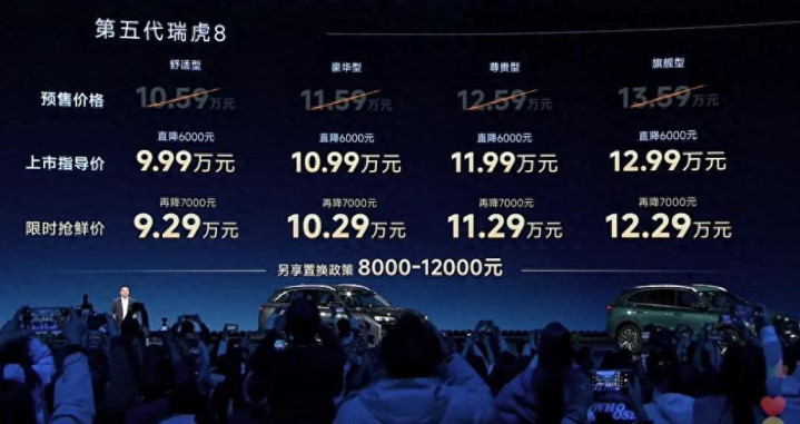 11月10日,备受瞩目的第五代瑞虎8正式登场,这款定位“豪华大五座家庭SUV”的新车,推出4款配置车型,官方售价9.99 - 12.99万元,限时抢鲜价更是低至9.29 - 12.29万元,在竞争激烈的SUV市场投下一颗重磅炸弹。